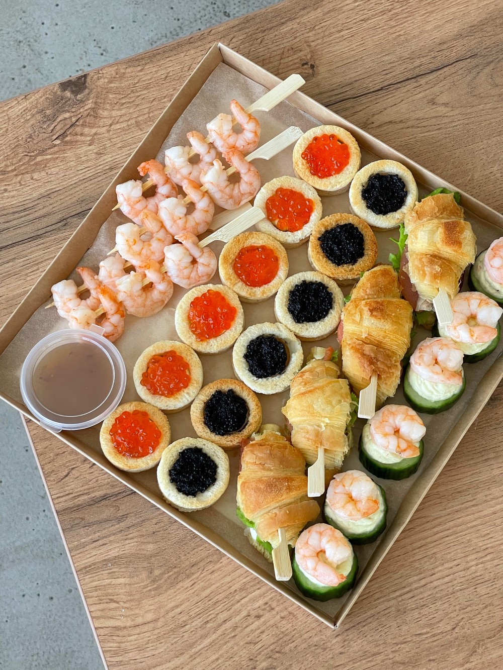 В гастробокс входит 25 закусок и соус: