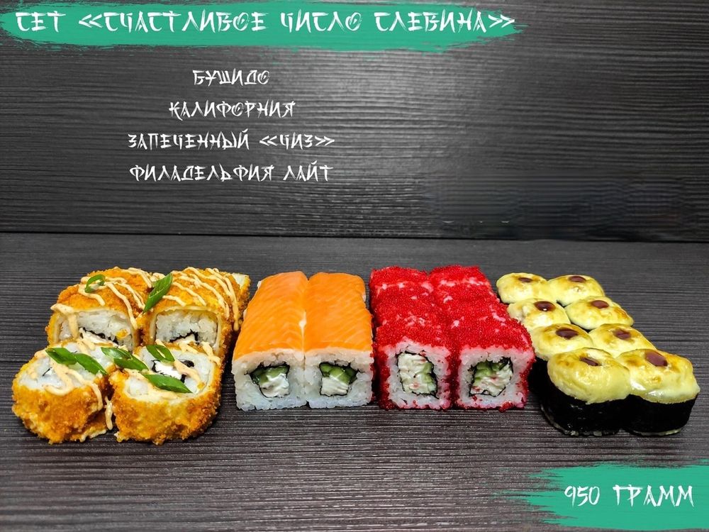 Ролл «Филадельфия лайт», ролл «Калифорния», ролл «Запеченный чиз», ролл «Бушидо»